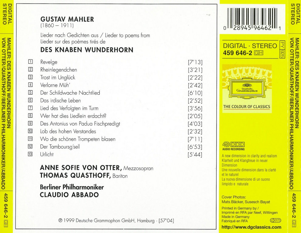 From the first, rhythmically crisp trumpet fanfares, so skilfully imitated by Berlin woodwind later on, you know you are in the most vivid of hands. Abbado is right to trust the varied tone colours of his two singers to carry the many boy-girl dialogues single-handedly in each song, as Mahler always intended (and contrary to the practice of most other contenders). Von Otter plays the wench with just a hint of Strauss’s Octavian disguised as Mariandel, and none of the archness of a Schwarzkopf, while the desperation of ‘Das irdische Leben’ is carefully graded. And Quasthoff is as quietly witty in pointing up the rhythms and phrases of the fables as he is harrowing in the military doom-songs. Unsurpassable.